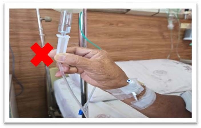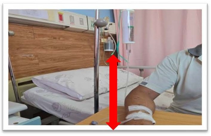 - 如有回血,請將點滴瓶位置調高;或將手放低。
