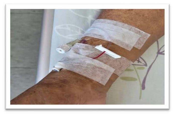靜脈注射一般會注射在手上特殊情況才會打在腳或腿上(因為下肢容易感染), 故請保持清潔並抬高,使血循保持良好。